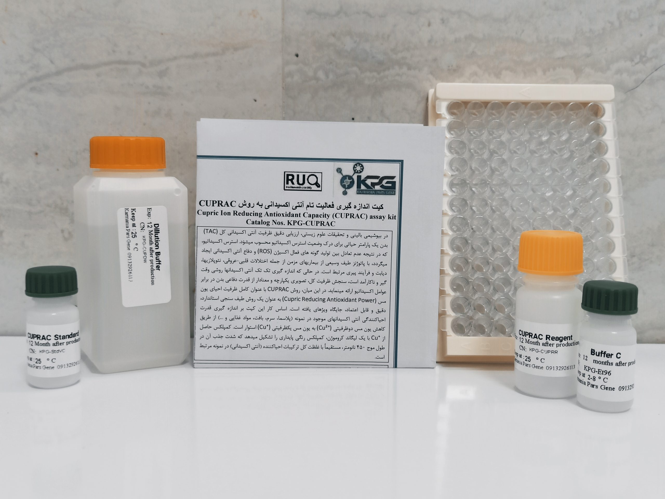 در بیوشیمی بالینی و تحقیقات علوم زیستی، ارزیابی دقیق ظرفیت آنتی اکسیدانی کل (TAC) بدن یک پارامتر حیاتی برای درک وضعیت استرس اکسیداتیو محسوب میشود. استرس اکسیداتیو، که در نتیجه عدم تعادل بین تولید گونه های فعال اکسیژن (ROS) و دفاع آنتی اکسیدانی ایجاد میگردد، با پاتوژنز طیف وسیعی از بیماریهای مزمن از جمله اختلالات قلبی-عروقی، نئوپلازیها، دیابت و فرآیند پیری مرتبط است. در حالی که اندازه گیری تک تک آنتی اکسیدانها روشی وقت گیر و ناکارآمد است، سنجش ظرفیت کل، تصویری یکپارچه و معنادار از قدرت دفاعی بدن در برابر عوامل اکسیداتیو ارائه مینماید. در این میان، روش CUPRACبا عنوان کامل ظرفیت احیای یون مس (Cupric Reducing Antioxidant Power) به عنوان یک روش طیف سنجی استاندارد، دقیق و قابل اعتماد، جایگاه ویژهای یافته است. اساس کار این کیت بر اندازه گیری قدرت احیاکنندگی آنتی اکسیدانهای موجود در نمونه (پلاسما، سرم، بافت، مواد غذایی و …) از طریق کاهش یون مس دوظرفیتی (Cu²⁺) به یون مس یکظرفیتی (Cu⁺) استوار است. کمپلکس حاصل از Cu⁺ با یک لیگاند کروموژن، کمپلکس رنگی پایداری را تشکیل میدهد که شدت جذب آن در طول موج ۴۵۰ نانومتر، مستقیماً با غلظت کل ترکیبات احیاکننده (آنتی اکسیدانی) در نمونه مرتبط است.